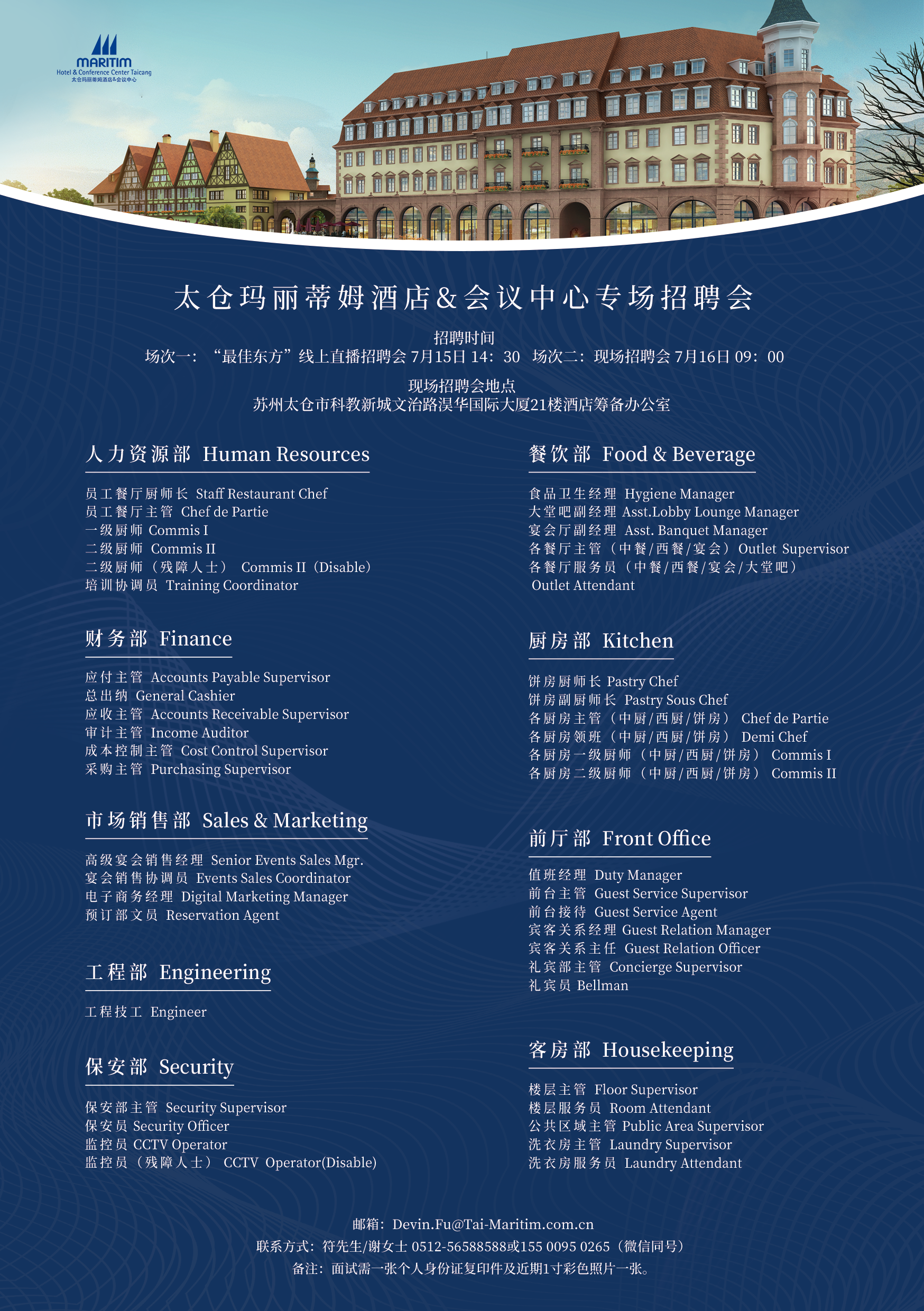 加入瑪麗蒂姆,關(guān)注7月太倉瑪麗蒂姆酒店&會議中心專場招聘會