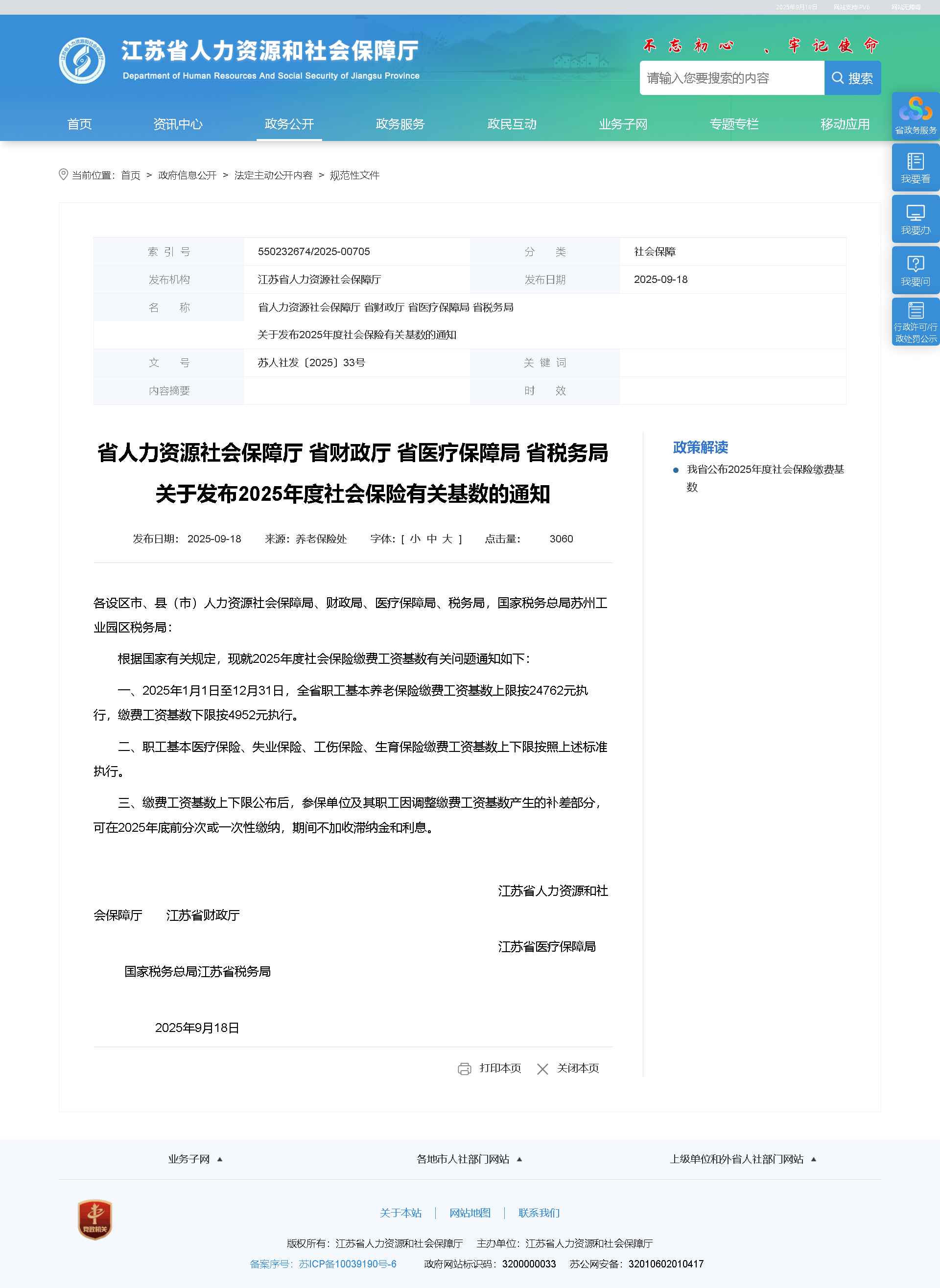 關(guān)于發(fā)布2025年度社會(huì)保險(xiǎn)有關(guān)基數(shù)的通知 蘇人社發(fā)〔2025〕33號(hào)